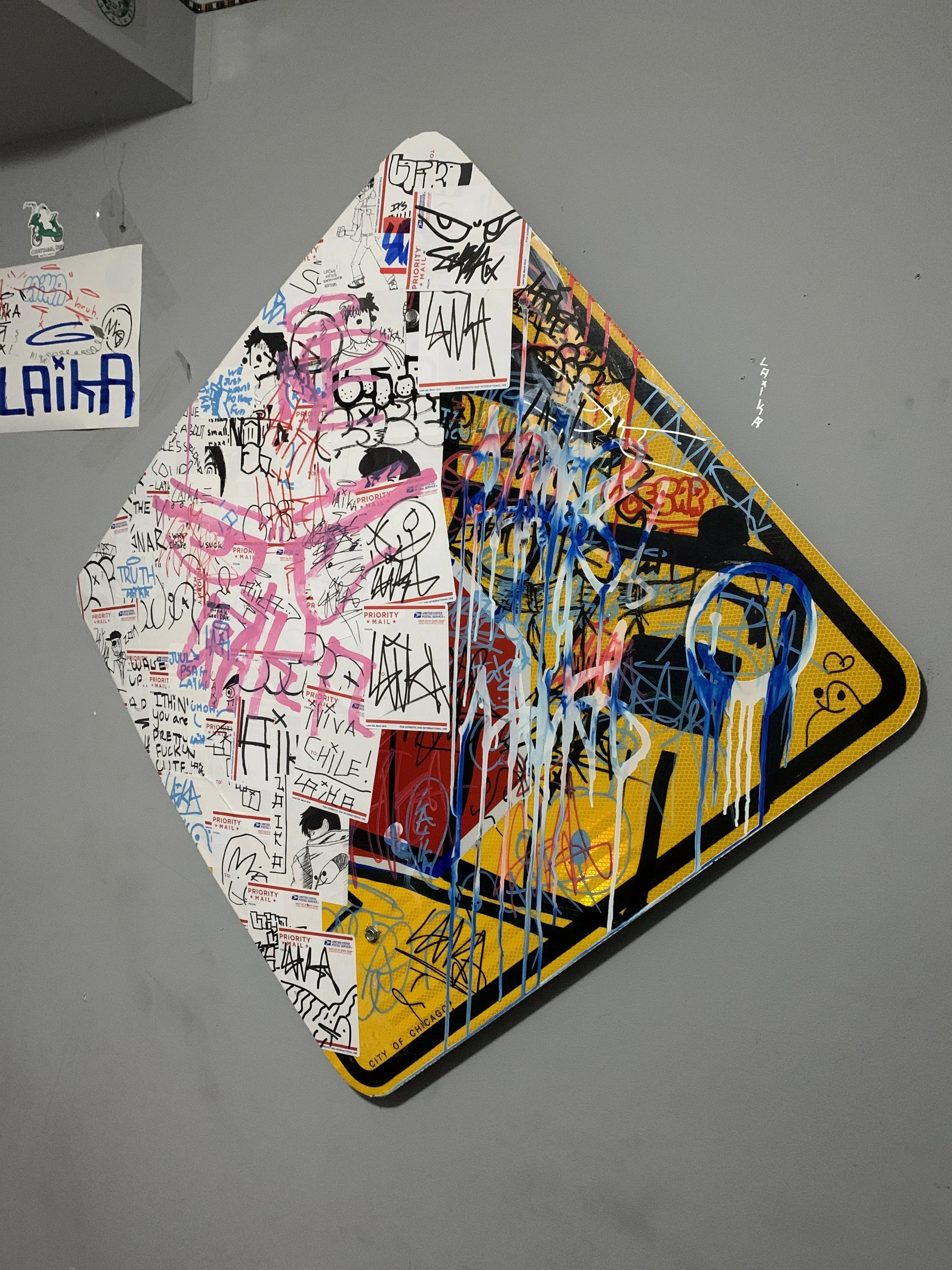 Laika was born in 2018, fueled by a mix of frustration and creative rebellion. After a bad experience with a certain well-known skate brand (whose name conveniently rhymes with latrine), I decided to take matters into my own hands—literally. It started with a few sticker designs that I handed out to friends at school, but soon evolved into a full-fledged creative project inspired by my love for skate culture and Russian streetwear. Influences like Gosha Rubchinskiy and Yulia Makarova shaped the aesthetic, while my passion for design, video, and art gave Laika its own unique identity. Along the way, I had two collaborations, made countless memories, and left my mark—literally. If you ever wander the halls of Niles North High School, you might still spot a Laika sticker holding strong, a small relic of the brand’s DIY spirit.